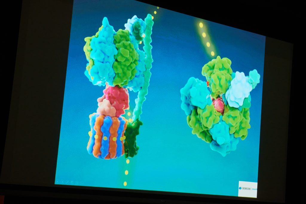 Prof. Feringa poruszył temat nanotechnologii i jej zastosowań w zakresie gromadzenia informacji czy medycyny, przełączników i silników molekularnych, a także materiałów responsywnych.