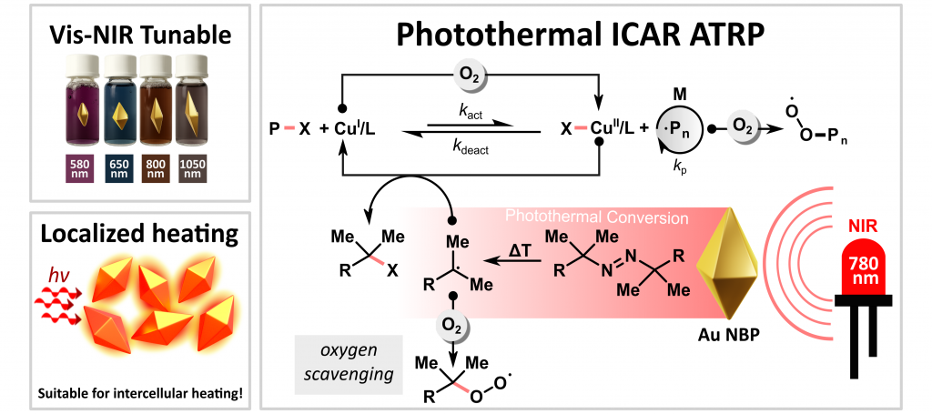 Naukowcy opracowali nowy sposób prowadzenia polimeryzacji rodnikowej z przeniesieniem atomu (ATRP), w którym reakcję można uruchamiać i zatrzymywać za pomocą światła bliskiej podczerwieni (NIR, 780 nm). Kluczową rolę pełnią nanobipiramidy złota (Au NBPs), które działają jak nanoskalowe przetworniki energii, zamieniając światło na lokalne ciepło, które inicjuje proces polimeryzacji.