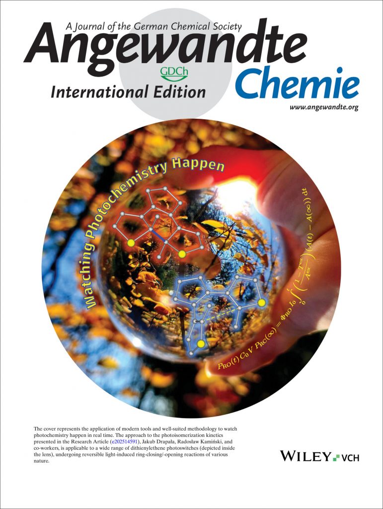 A paper, authored by the PhD student Jakub Drapała together with Krzysztof Durka, Katarzyna N. Jarzembska and Radosław Kamiński, was published in the Angewandte Chemie International Edition journal (Wiley-VCH). The investigations published in the article entitled “Reliable determination of photoreaction kinetics and cyclization/cycloreversion quantum yields for dithienylethene switches” were conducted during the realization of the OPUS grant (National Science Centre) within consortium consisting of University of Warsaw (leader) and Warsaw University of Technology (partner). The published article was awarded the issue inside front cover.
